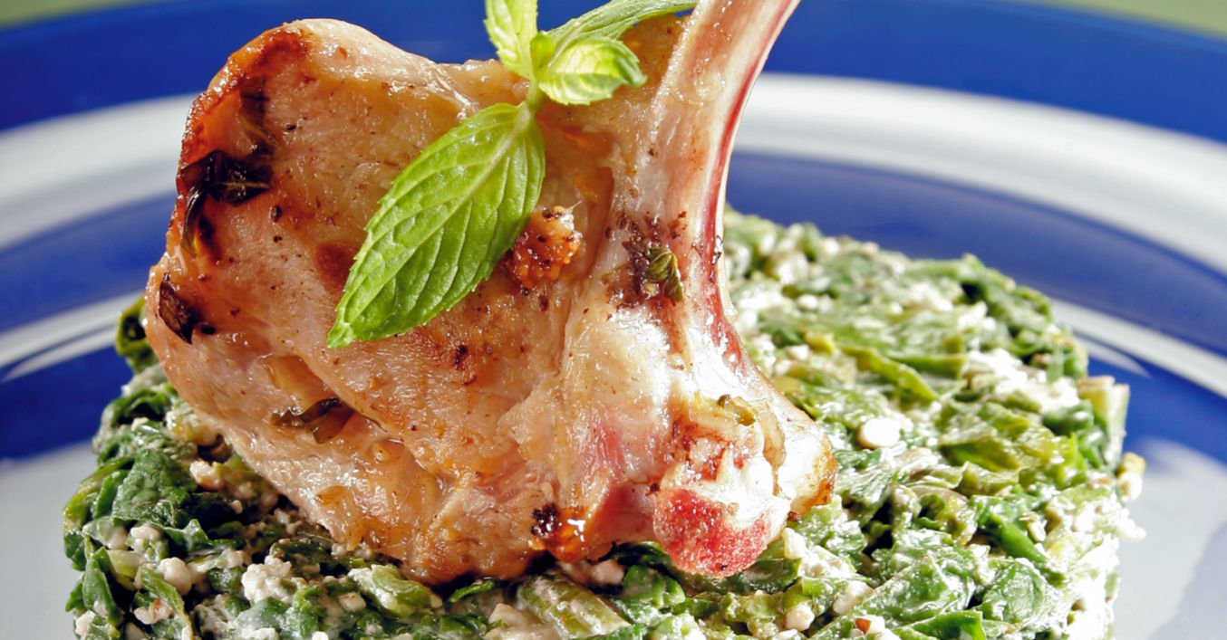 Агнешки котлети върху канапе от спанак