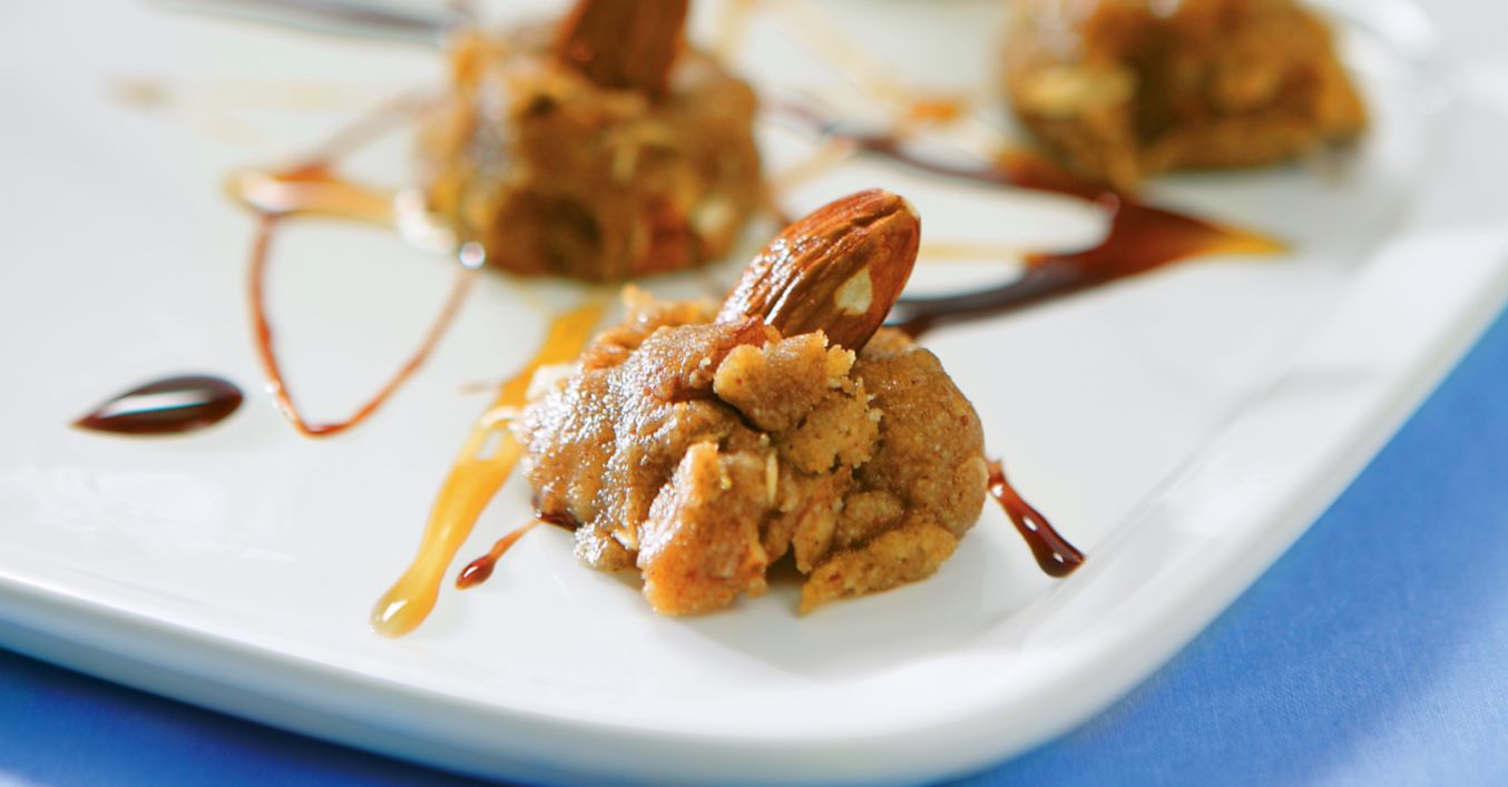 Във всяка сладка, с пръст се прави лека вдлъбнатина и се слага по един цял бадем. Сладките се запичат в силно загрята фурна, докато получат златистокафяв цвят.