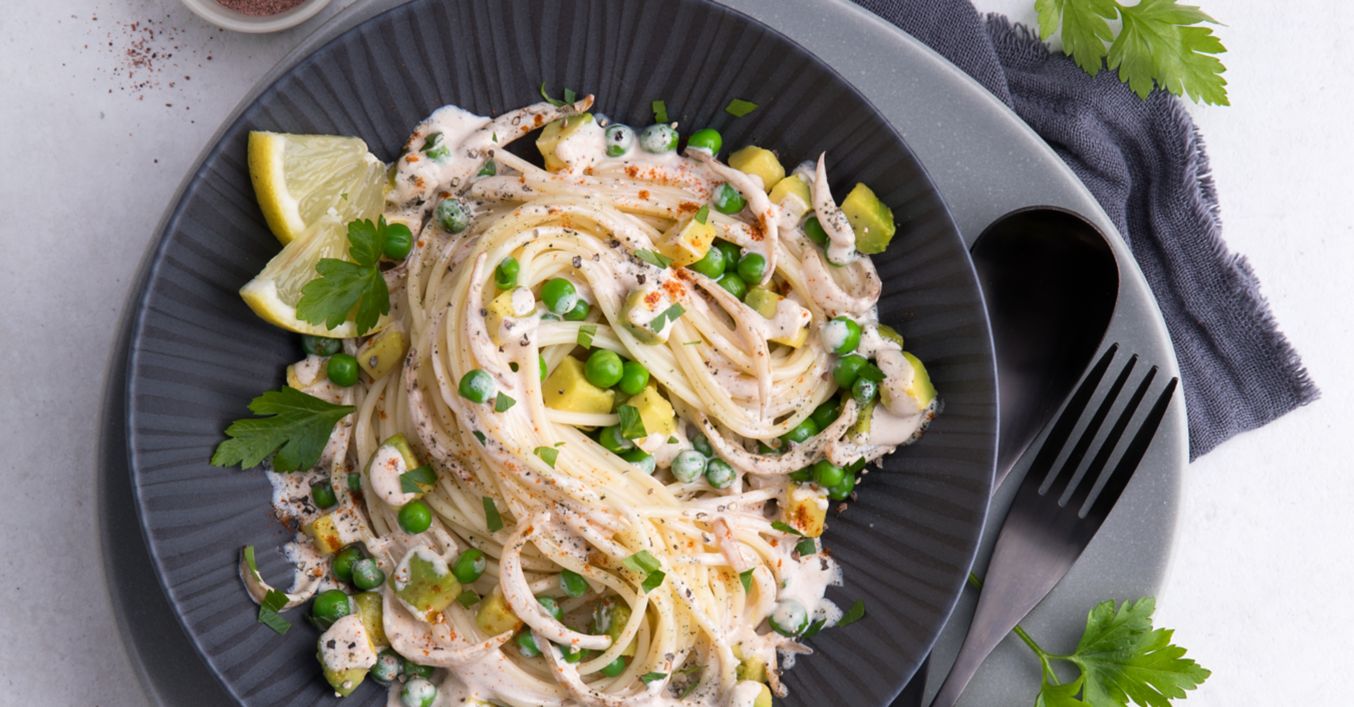 Веган паста с авокадо и сол Кала Намак
