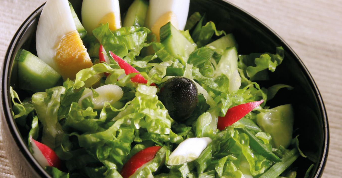 В салатиера се поставят марулите, лукът, краставицата и репичките и всичко се разбърква. Салатата се посолява, подправя се със зехтина и лимоновия сок и се гарнира с яйцата.