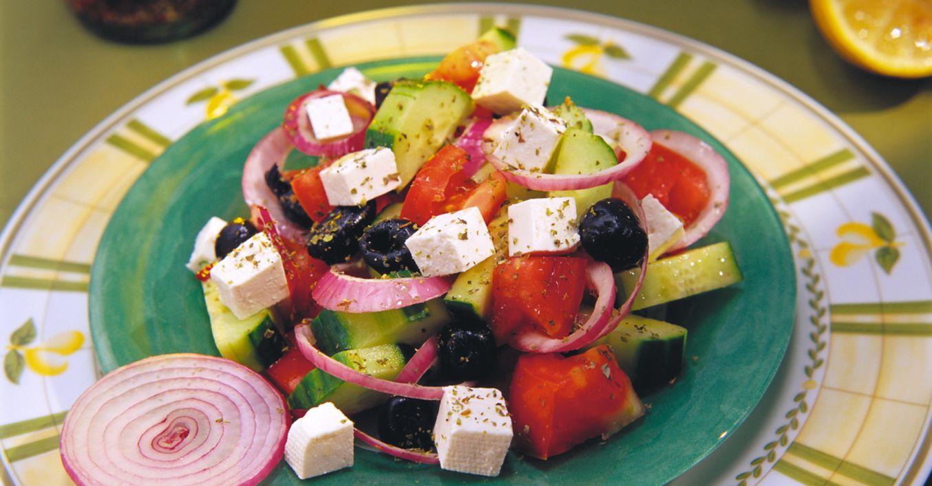 Доматите и краставиците се режат на кубчета, а лукът – на шайби. Внимателно се разбъркват и се подреждат в чинии. Около тях се поставя нарязаното на кубчета сирене и маслините и се поръсва с малко риган.
