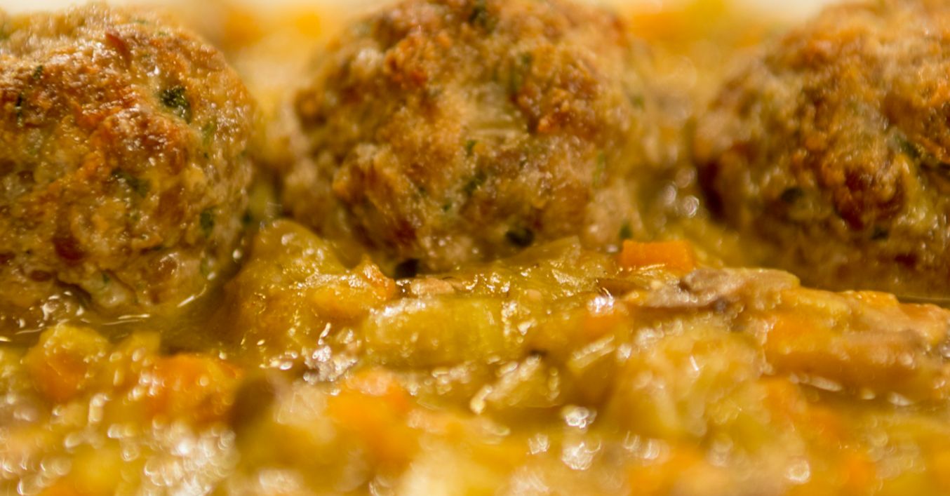 Тавата, в която са се пекли, се загрява на котлона с останалото маслиново масло. Запържва се брашното и се налива малко от яхнията.