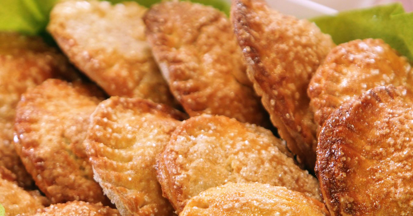 Тестото се разточва на голяма тънка кръгла кора. С ринг се изрязват кръгчета, краищата им се намазват с вода, а в центъра на половината от тях се слага по малко от пълнежа. Покриват се с останалите кръгчета и с вилица се притискат по краищата.