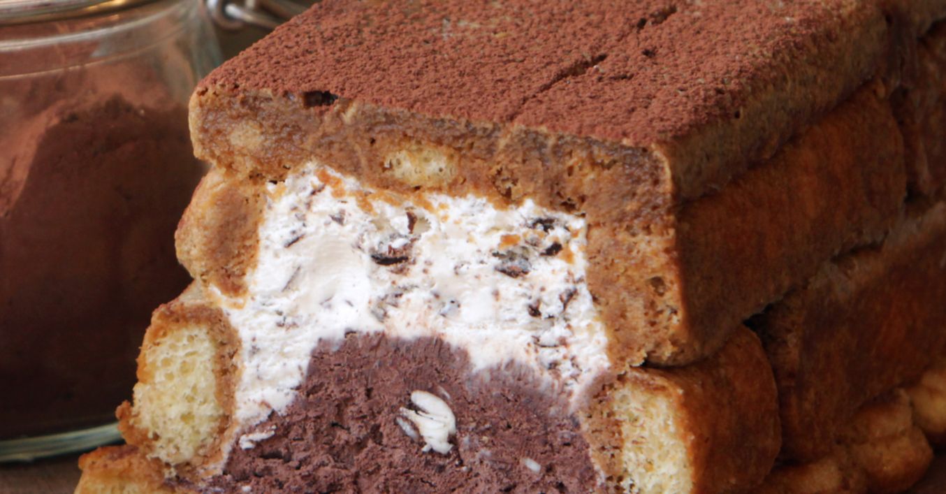 Покрива се с фолио за свежо съхранение и се оставя във фризер за 2–3 часа. След това десертът се поръсва с какао, нарязва се на парчета и се сервира.