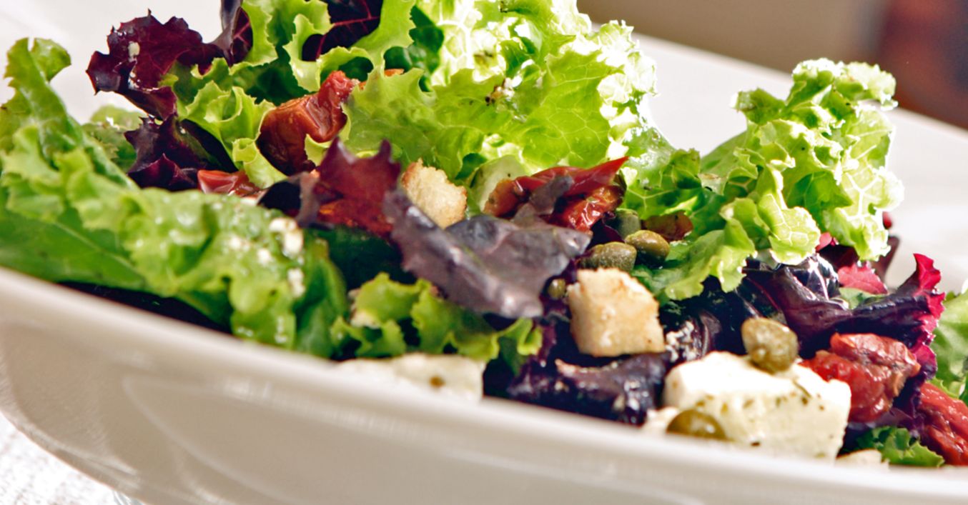 Зелена салата с мариновано овче сирене