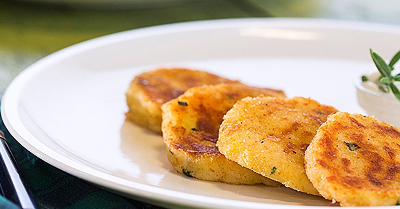 Картофените кюфтета се сервират със соса.