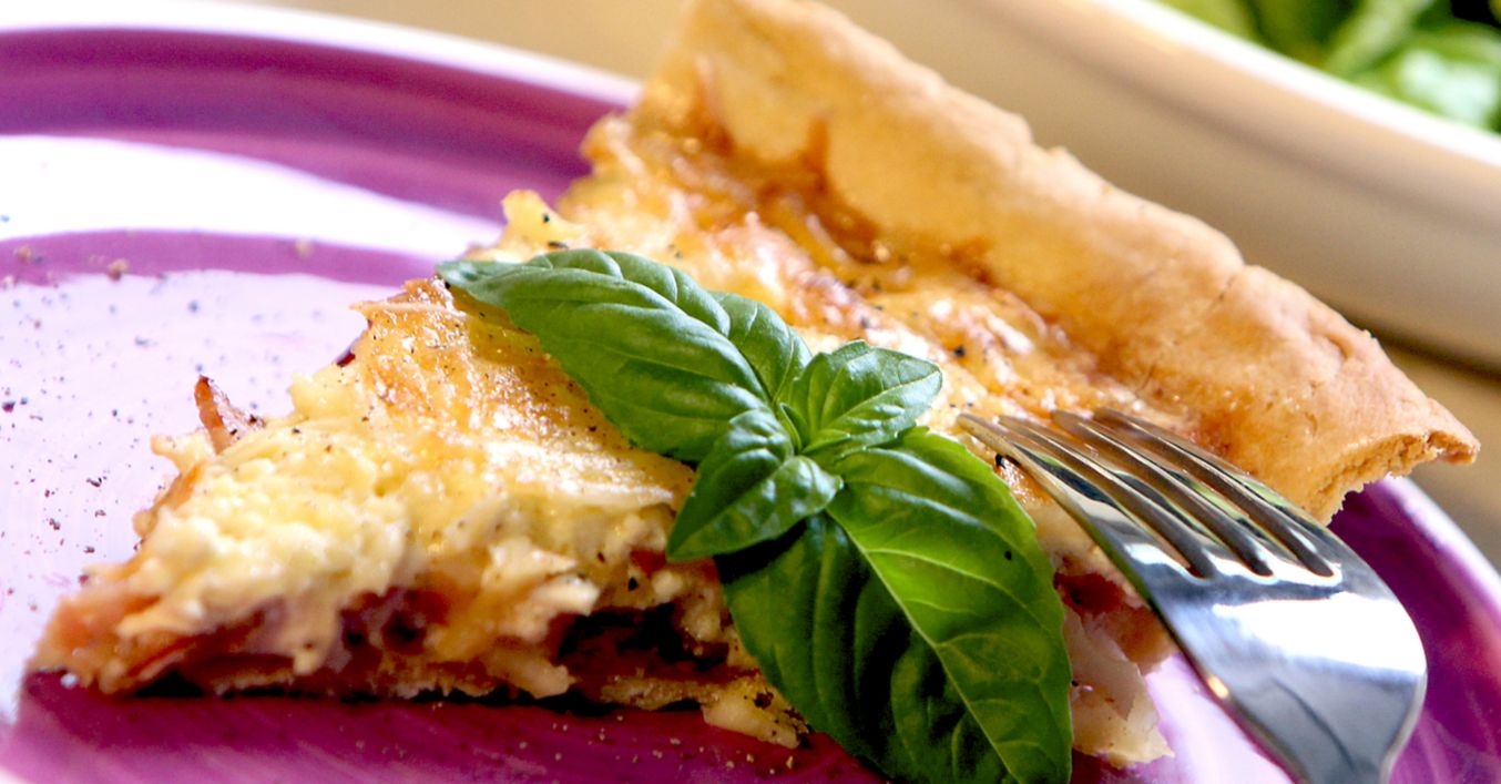 Върху готовото тесто се изсипват задушените бекон и лук, заливат се с яйчената смес, настъргва се сиренето и кишът отново се връща във фурната. Пече се, докато сиренето се разтопи.