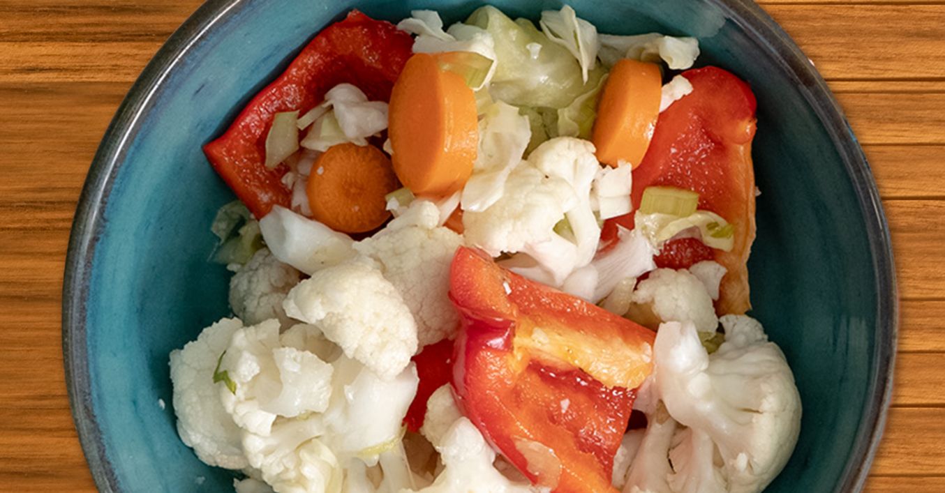 Зеленчуците се режат на предпочитаната големина и се подреждат в голям буркан.