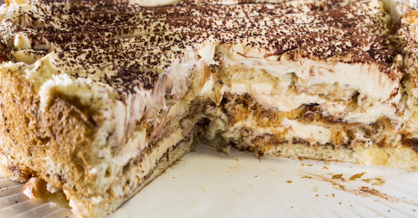 Дъното и стените на форма за торта с махащо се дъно (диаметър 24 см) се покриват с две отделни парчета хартия за печене. Подреждат се парчетата козунак, като частите, които се допират до стените се намазват със сместа с кафе.