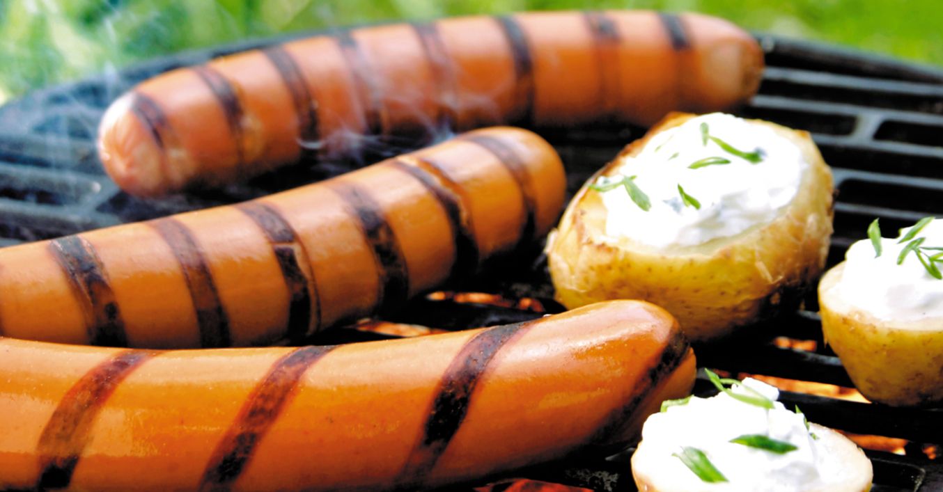 Кренвиршите се сервират заедно с готовите пърлени картофи.