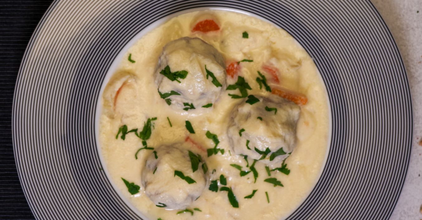Кюфтетата с бял сос от кисело мляко и яйца