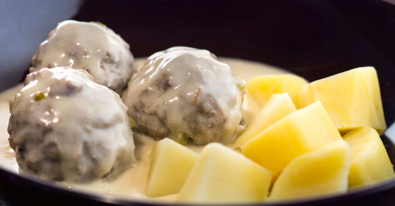 Кюфтетата се поднасят в дълбоки чинии, залети със соса и гарнирани със сварени картофи.