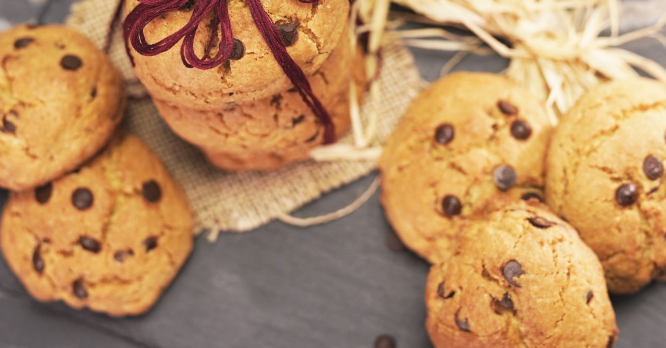 Прибавят се шоколадовите парченца. Разбърква се с лъжица и от сместа се оформят топчета с диаметър около 3 см. Подреждат се в тава с кухненска хартия и се пекат 15 минути в предварително загрята на 180°C фурна.