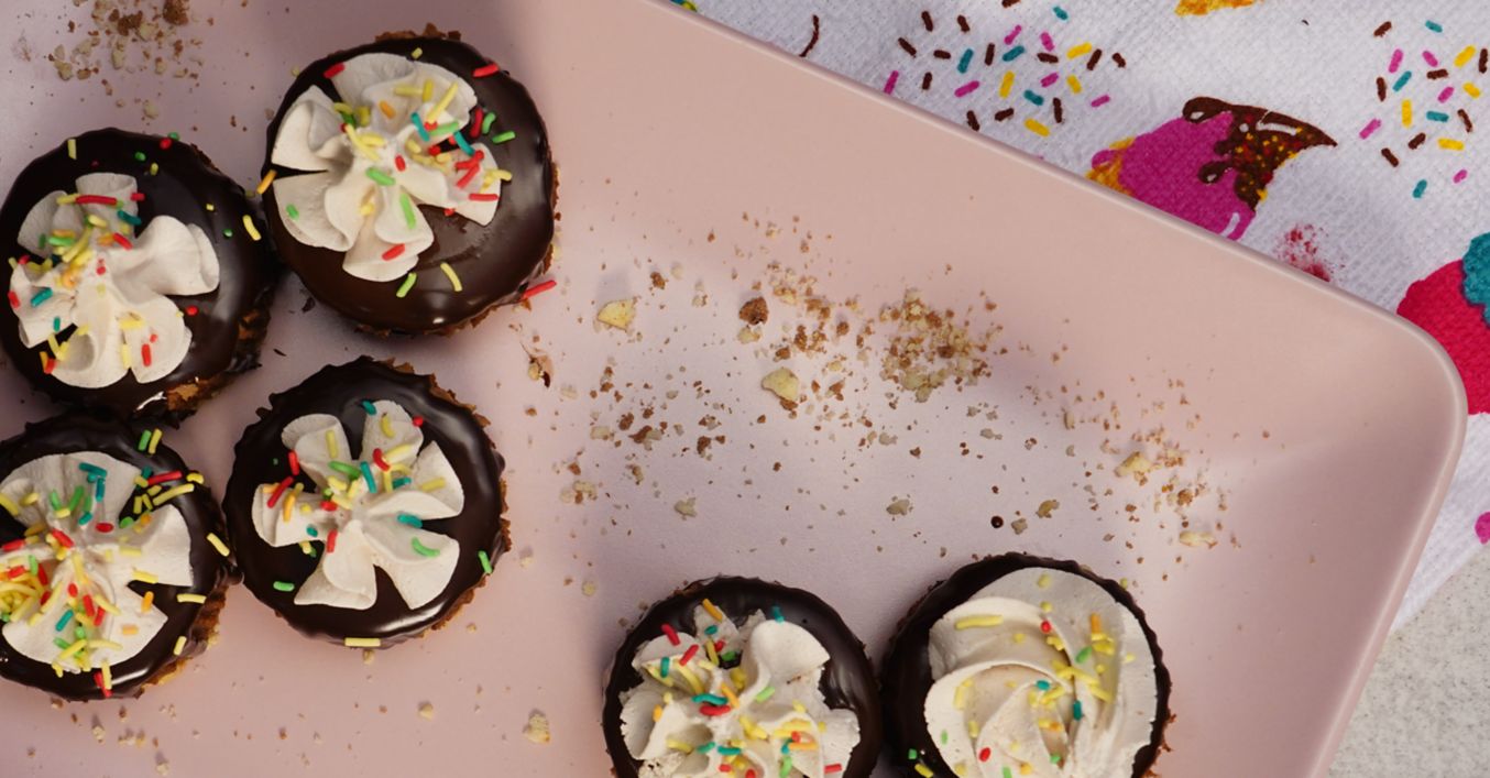 След като се изпекат, чийзкейковете се оставят да изстинат за десетина минути, след което се изваждат от хартиените кошнички. Поливат се шоколадовия ганаш и отгоре се шприцова от сметановия крем. Украсяват се със захарни пръчици или с друга декорация по желание.