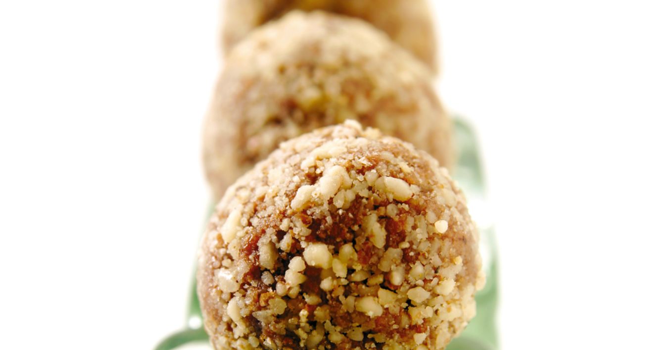 Оформят се топчета и се овалват в смлените орехи, като при овалването се дооформят. Поставят се в хладилник да стегнат и се подреждат в плато върху хартия.