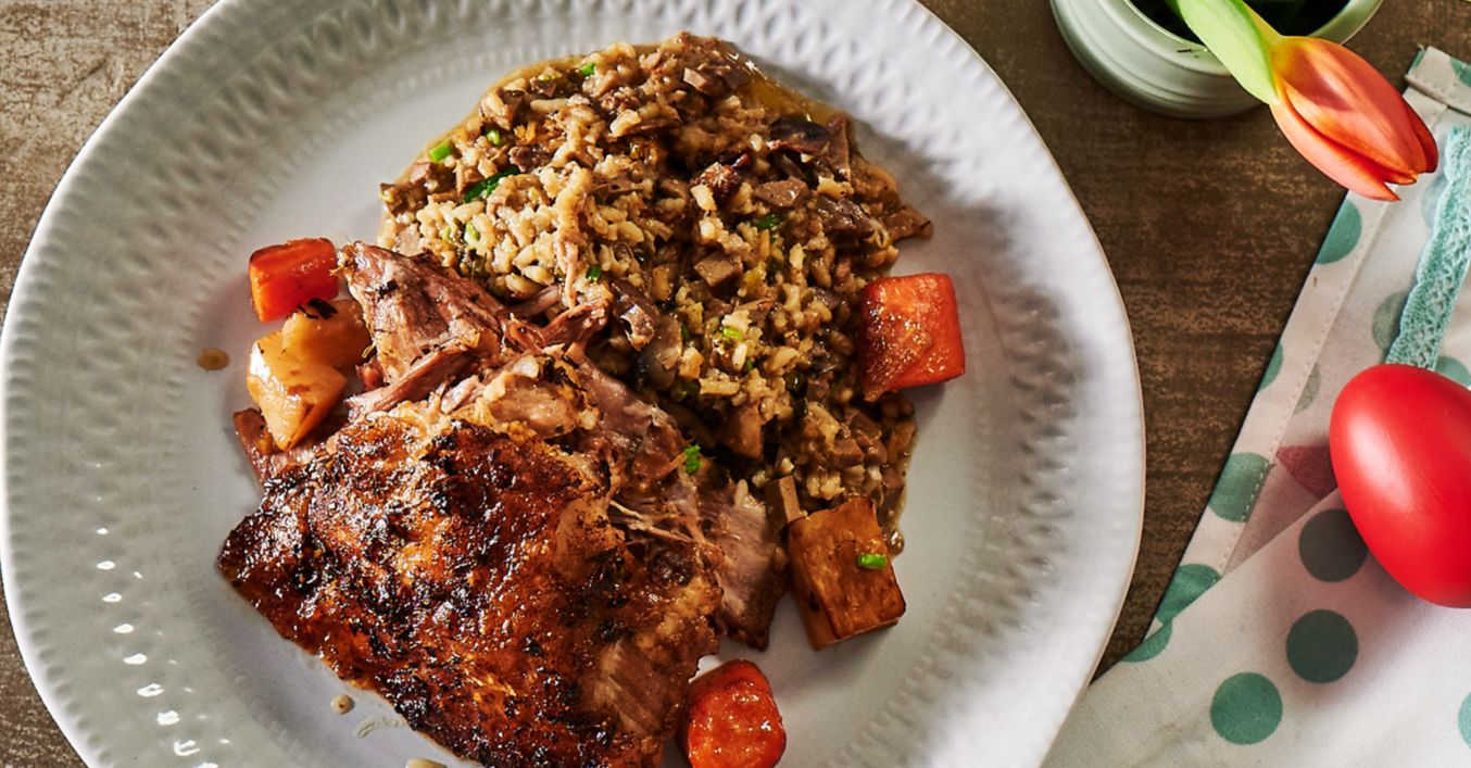 Печена агнешка плешка в ароматно масло и дроб сарма