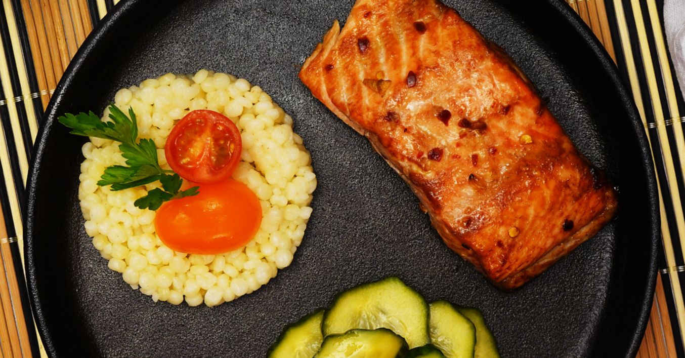 В купичка се смесват всички съставки за маринатата на сьомгата: 100 мл соев сос, 1 ч.л. лют пипер, 3 наситнени скилидки чесън, сокът от ½ лайм, 1 с.л. маслиново масло и 1 ч.л. мед. Филетата от сьомга се слагат в купа и се заливат с маринатата. Овалват се в нея добре, след което се подреждат в тава с кухненска хартия. Пекат се в загрята на 175 °С фурна 20 минути.
