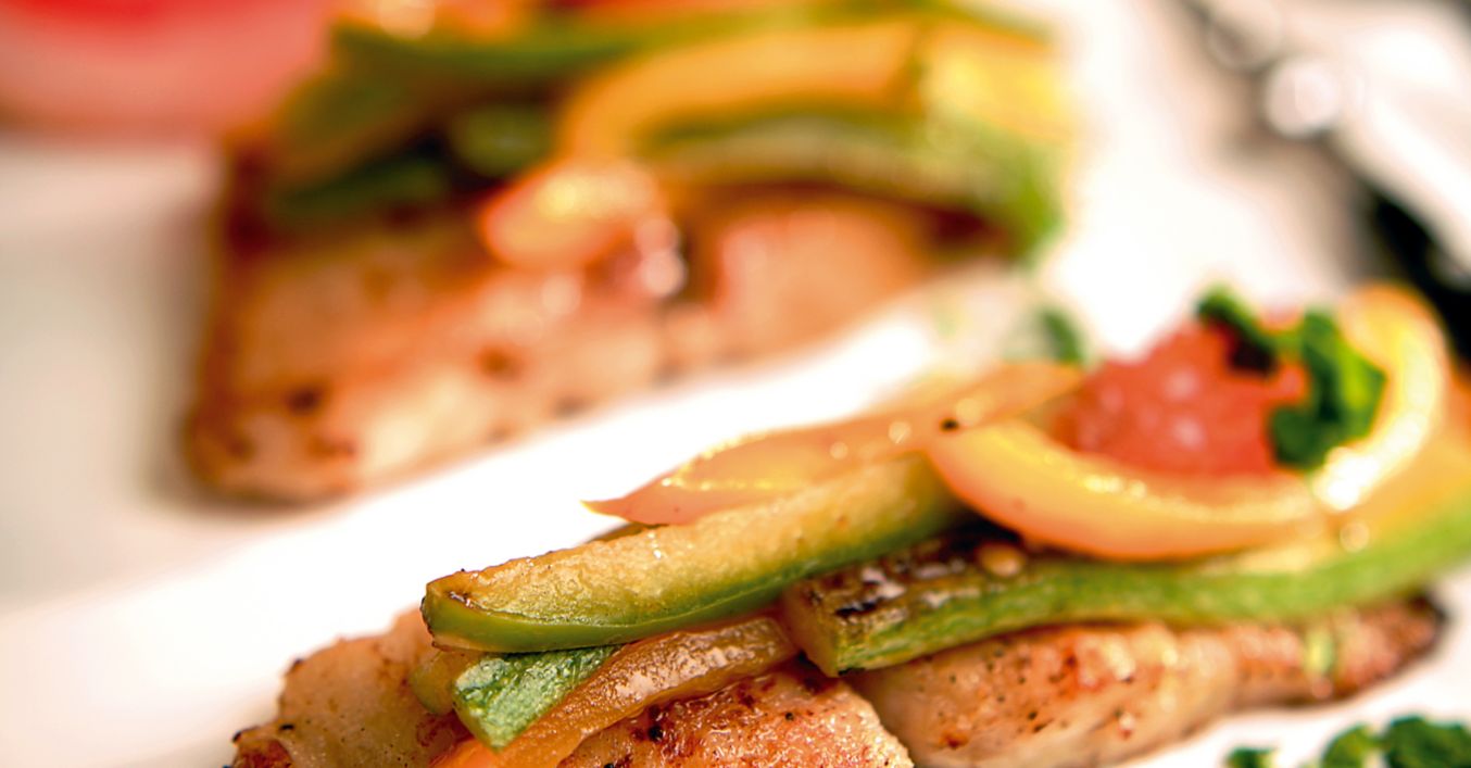 Тиквичките, чушките и грейпфрутът се режат на жулиени и се сотират за 3-4 минути. Към тях се добавят кафявата захар и сокът на лайма и се разбъркват.