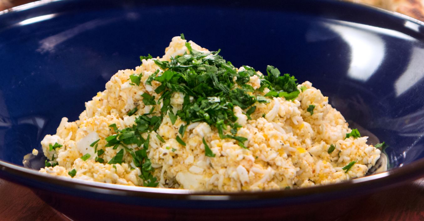 Яйцата се сваряват за 9 минути. Охлаждат се, обелват се и се настъргват на ситно ренде.