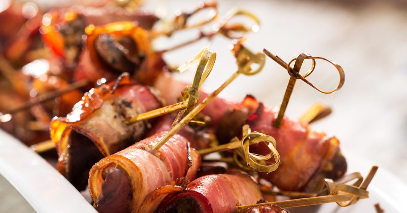 Пилешки дробчета в бекон на клечка