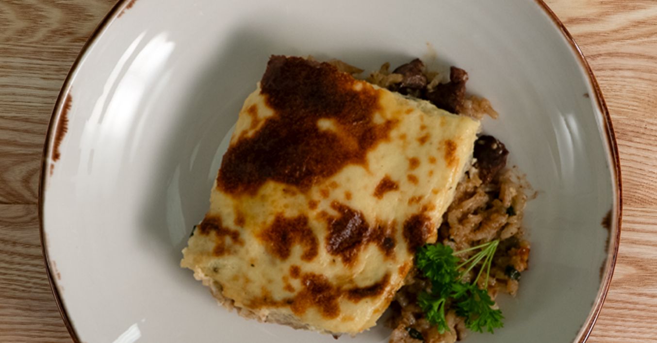 Готовото ястие се реже на квадрати и се сервира с две лъжици кисело мляко.