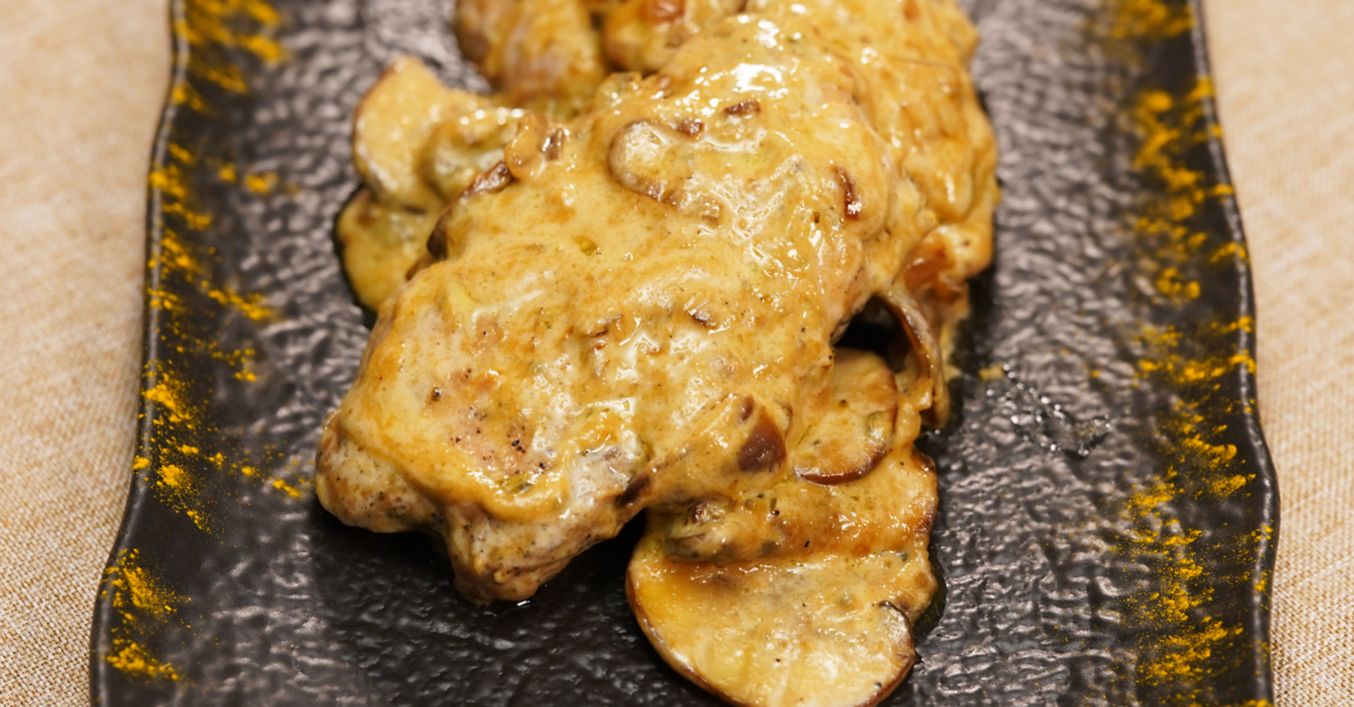 Пилешко със сос от гъби и синьо сирене