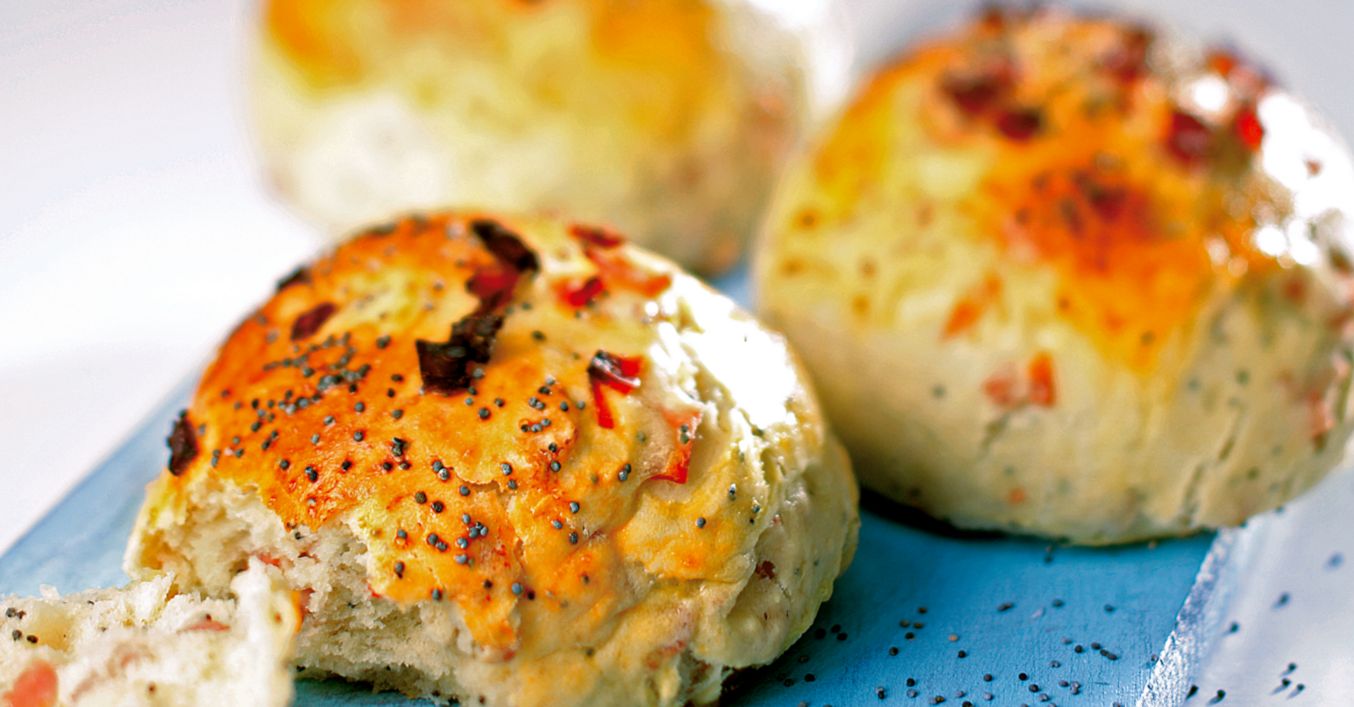 Намазват се с разбития жълтък и се поръсват с маково семе. Пекат се 20 минути на 180°С.