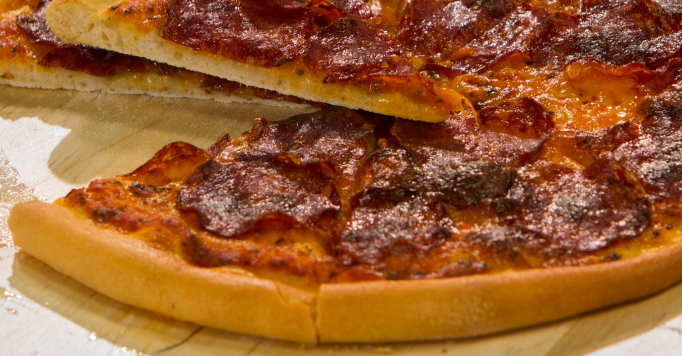 Всеки блат се намазва с доматен сос, отгоре се слага накъсана моцарела и най-отгоре салам. Слага се върху плоча, която предварително е нагрята на 250°С във фурната и се връща за печене.