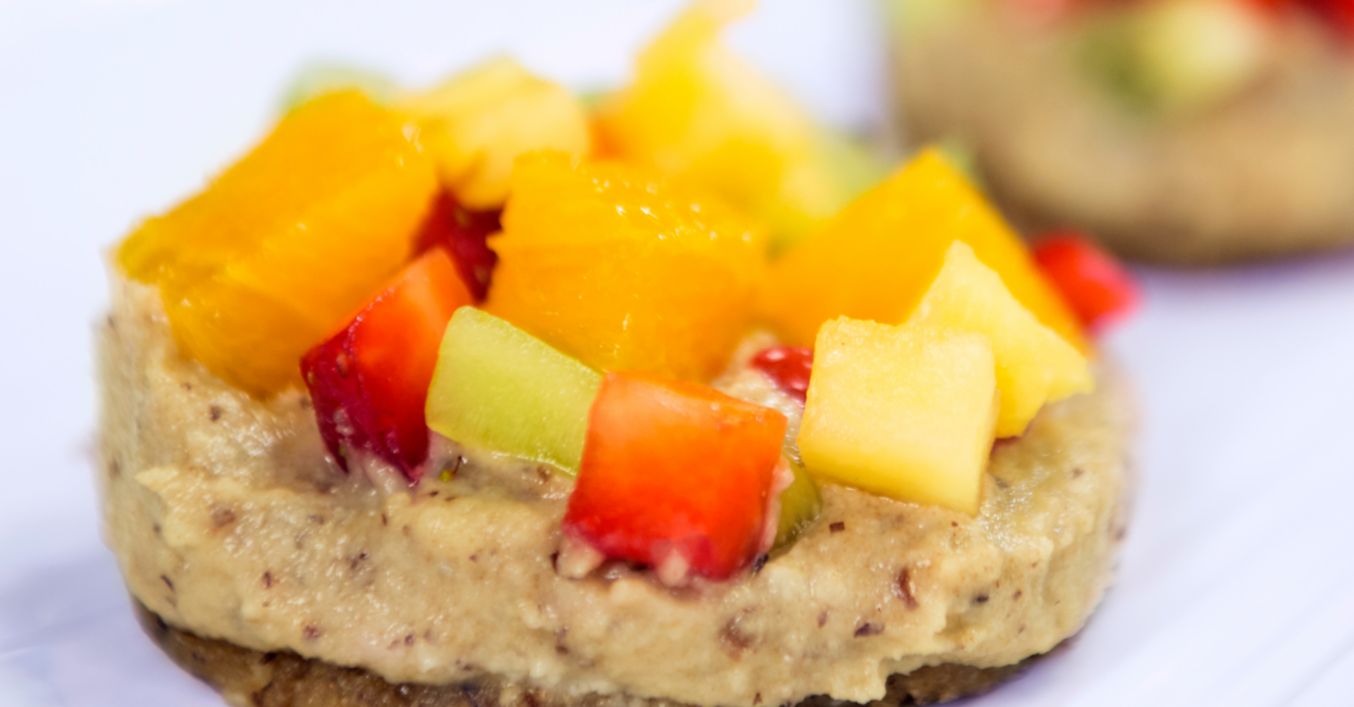 Основата се приготвя като фурмите, орехите, бадемите и канелата също се пюрират в блендер. Добавя се водата и сместа се оставя в хладилник за 20 минути.