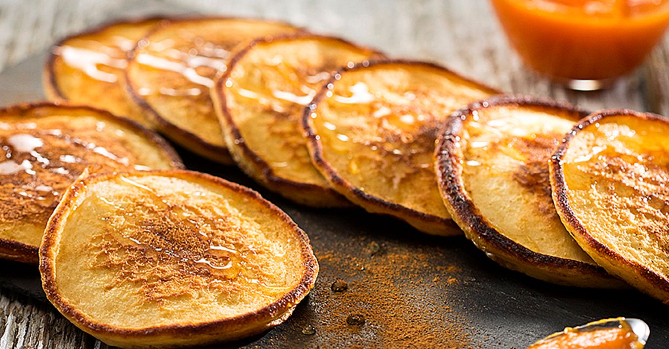 Содата се гаси в киселото мляко, прибавят се яйцата и сместа се разбива добре. Прибавят се захарта, ванилията, солта, брашното и се разбърква до хомогенизиране.Готовата смес се пържи в тиган, намазан с масло.Тиквата се реже на кубчета, слага се в съд, заедно със захарта, джинджифила и меда, наливат се 200 мл вода и се готви под капак, докато омекне. След това се отцежда и се пюрира.Палачинките се сервират с тиквеното пюре. По желание, се поливат с мед и се поръсват с канела.