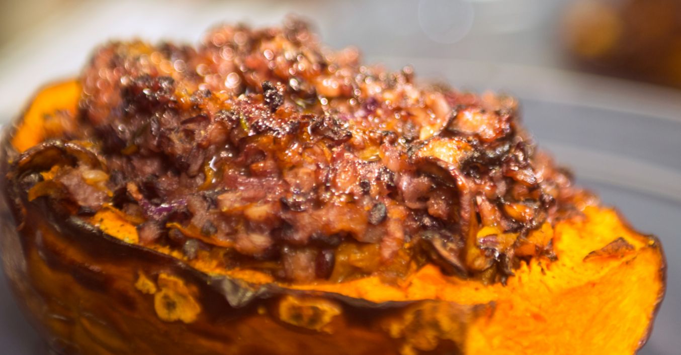 Пълнена тиква с ориз и гъби