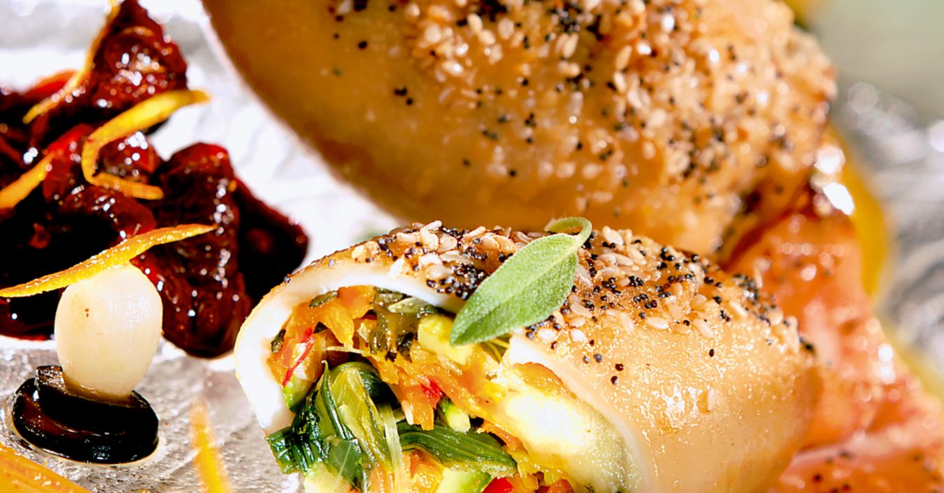 Пълнени калмари със зеленчуци и моцарела