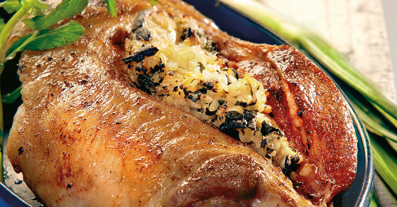 В тиган се разтапя маслото за плънката и за няколко минути се задушават наситнените лук, джоджен и магданоз. Добавят се оризът заедно с 1/2 ч. ч. вода и черният пипер. Бърка се, докато оризът поеме водата. Посолява се.