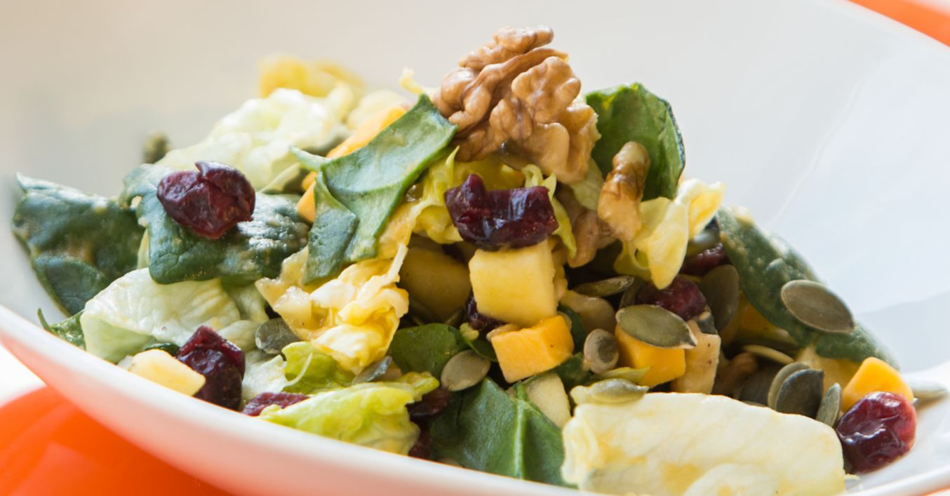 Пъстра салата с тиквен дресинг