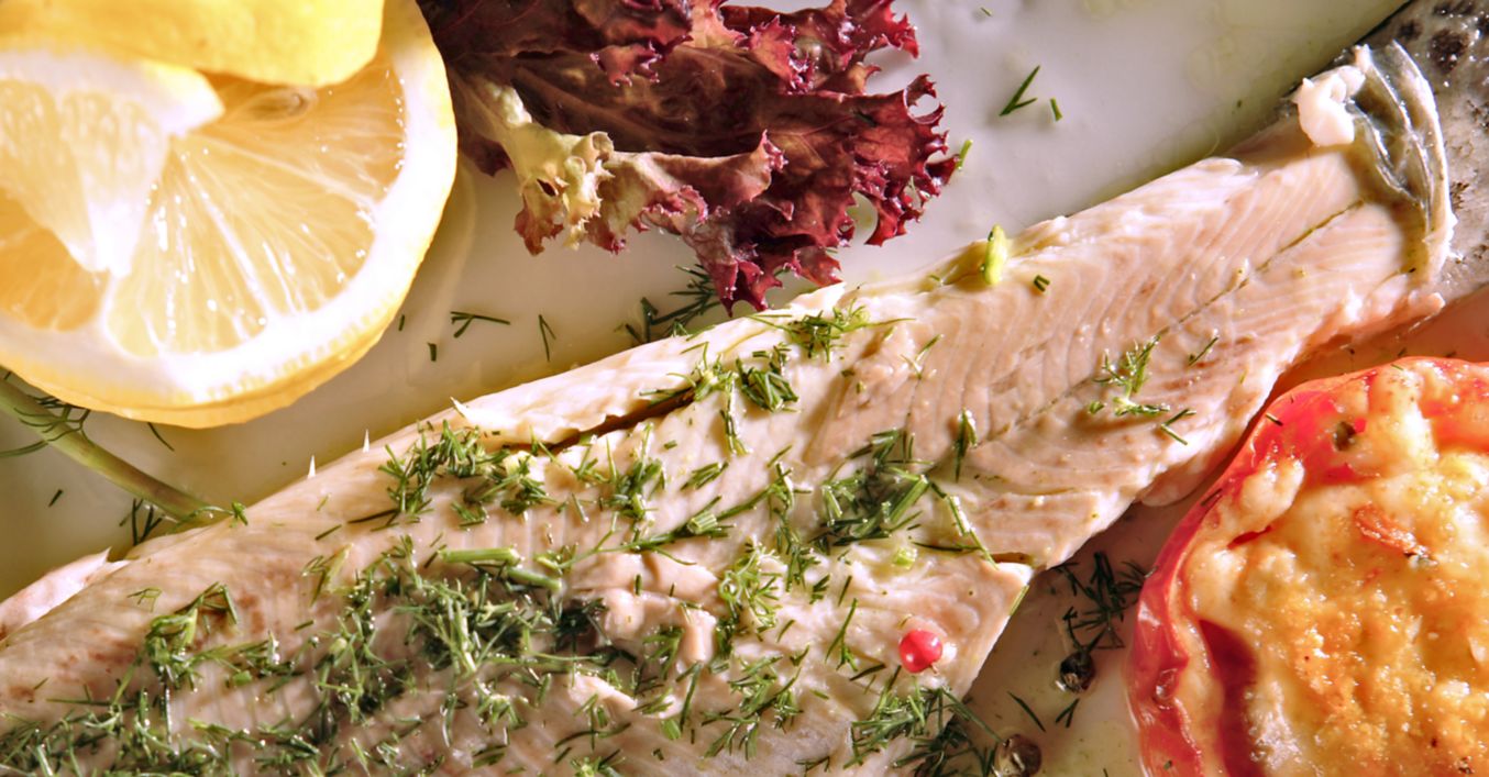 Пъстърва на пара със зелен сос