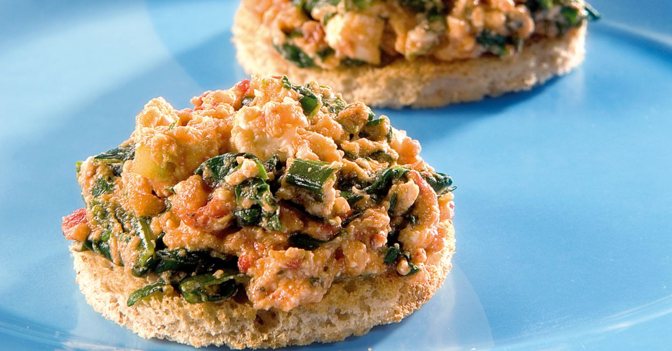Разядката се сервира върху сухар или препечен хляб. По желание спанакът може да се замени с коприва.