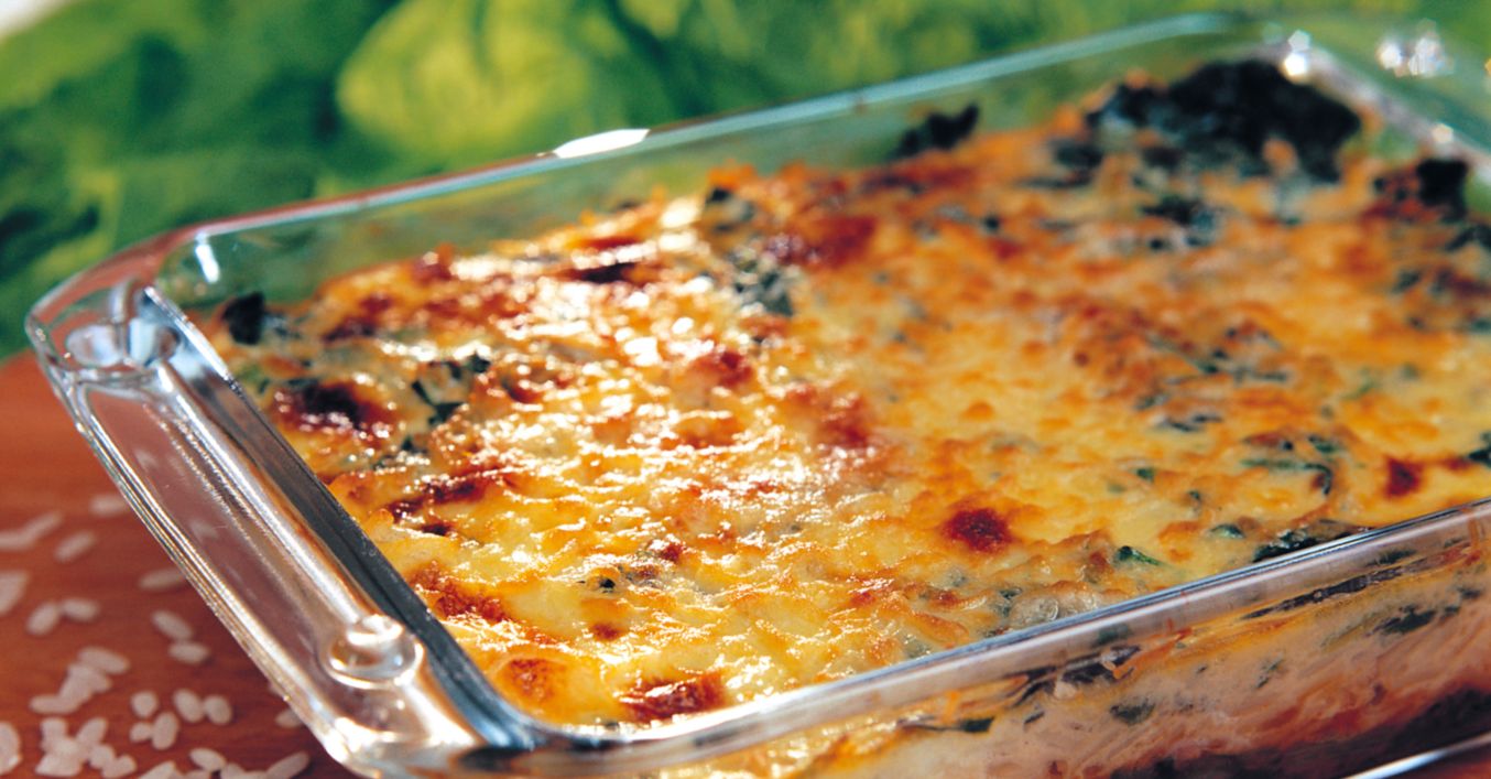 На дъното на съда за печене се слага от копривената смес, върху нея се реди пласт ориз и отново от копривата. Полива се със заливката, настъргва се от кашкавала и се пече до златисто в умерено загрята на 180 градуса фурна.
