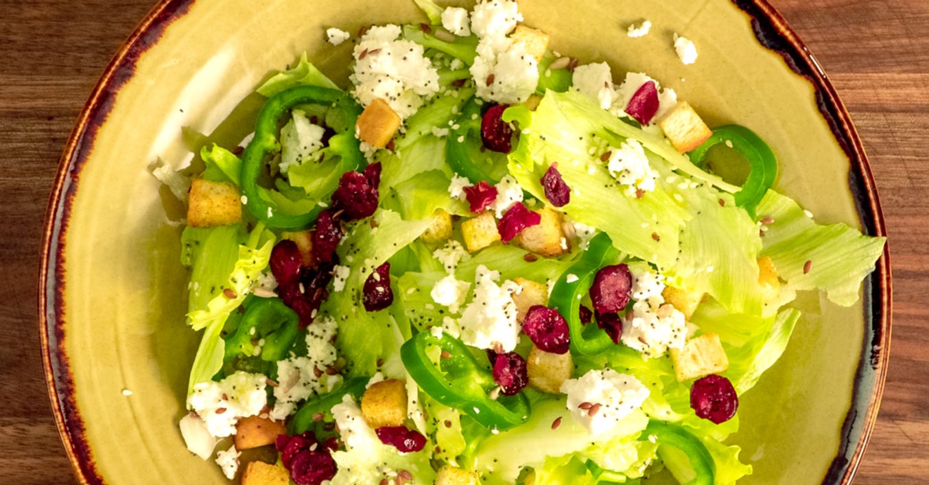 Салата айсберг, зелена чушка и козе сирене