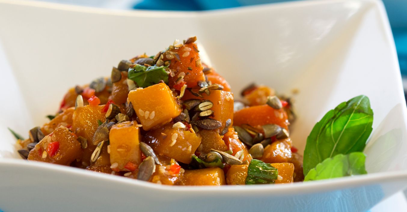 Тиквата се разбърква с получената смес. Пече се около 40 минути в загрята на 180 °С фурна, с вентилатор.