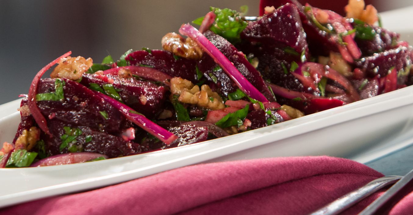 Салата от печено червено цвекло с орехи и чесън