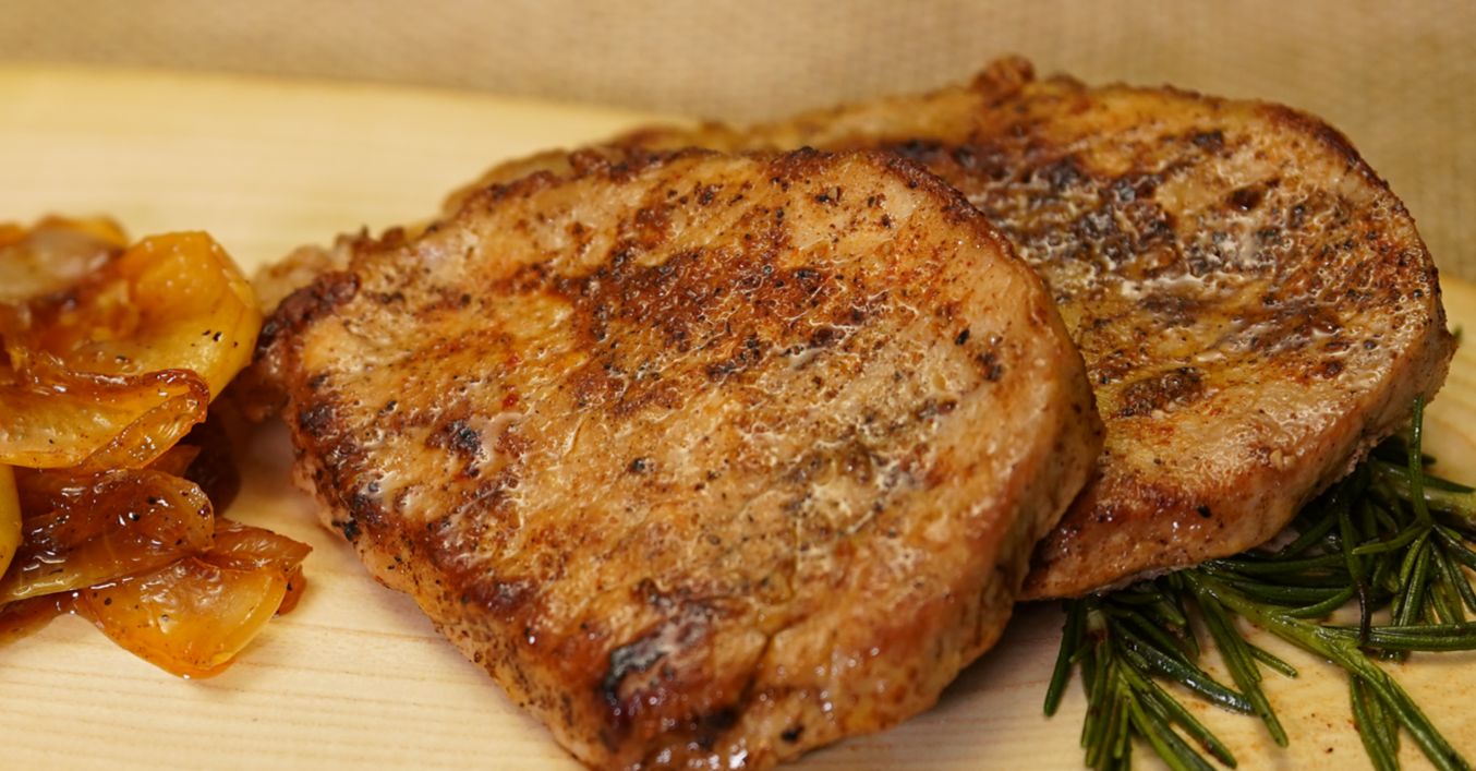 Свинско контрафиле на тиган с карамелизирани ябълки и лук