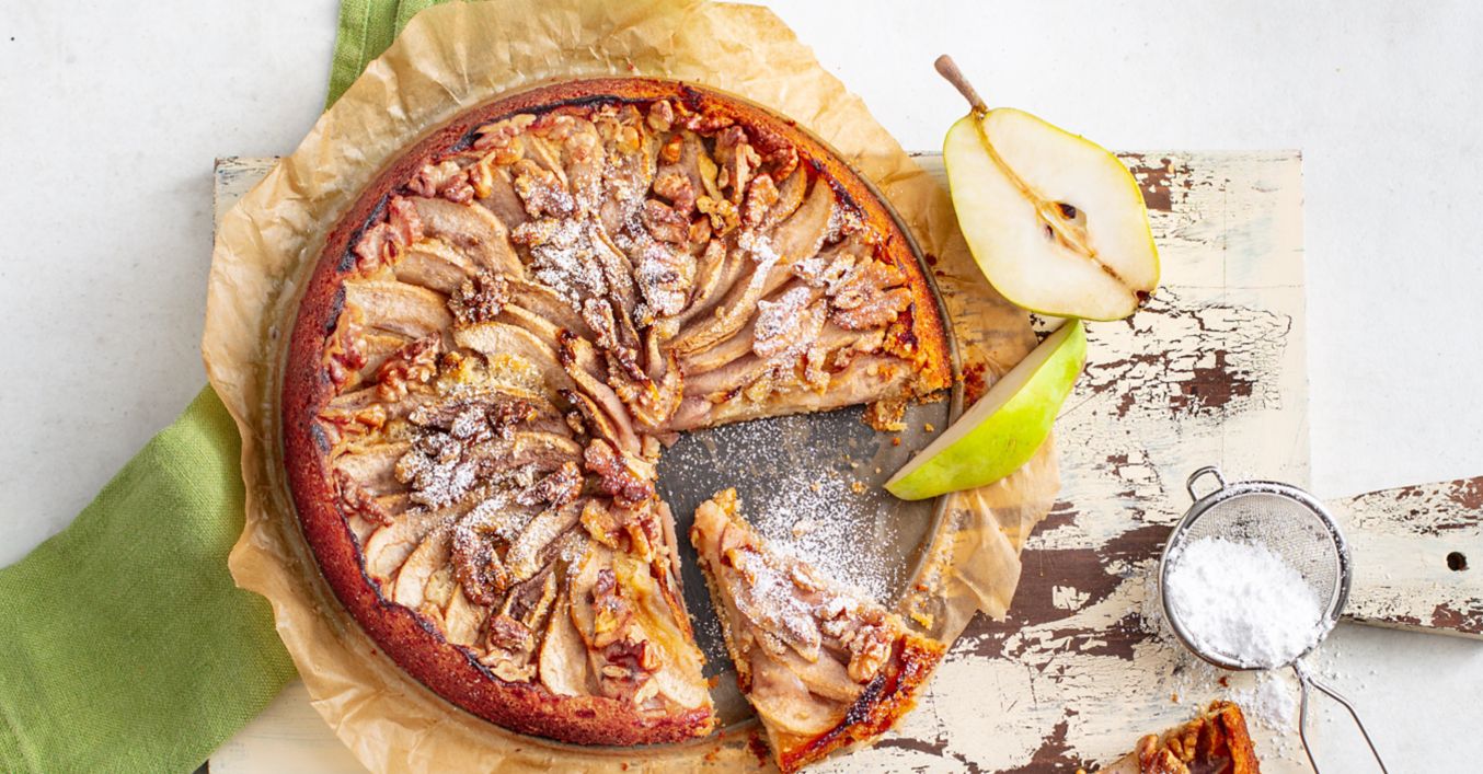 Сладкиш с круши, ябълков мус и орехи