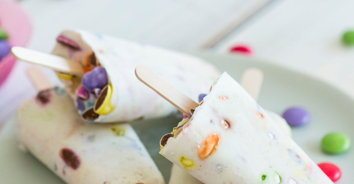 Шушулката ванилия се разрязва по дължина и с помощта на нож се обират семенцата. Прибавят се към киселото мляко, сметаната, захарта и лимоновия сок. Бонбонките се натрошават на едри парчета и се прибавят към останалите съставки.