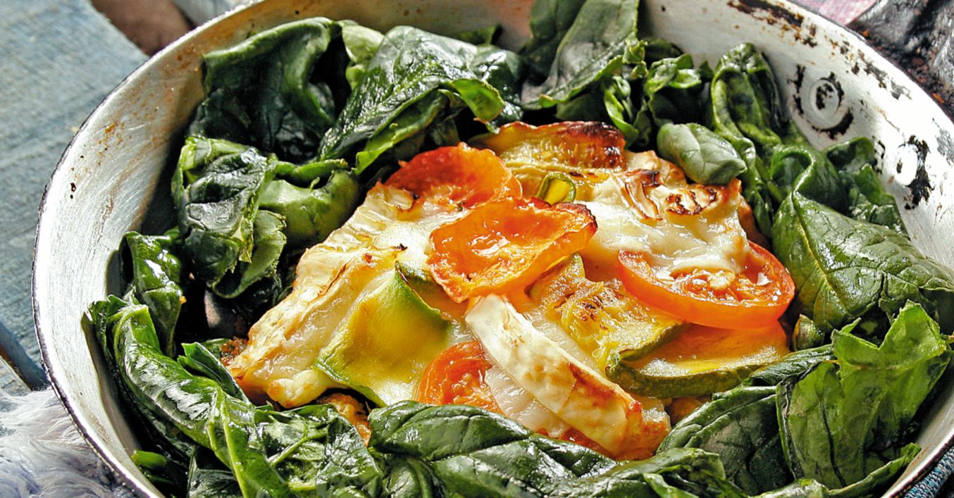 Спанак с тиквички и козе сирене