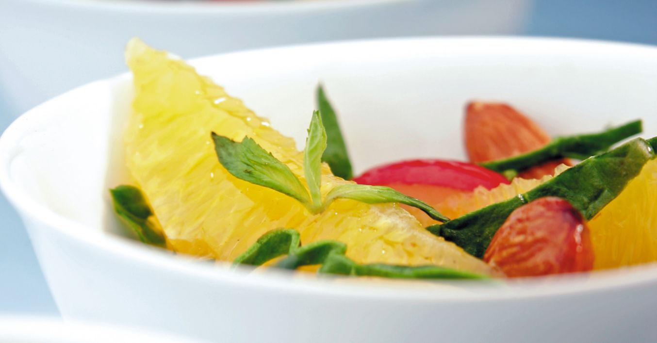 Спаначена салата с репички в портокалово-канелен винегрет