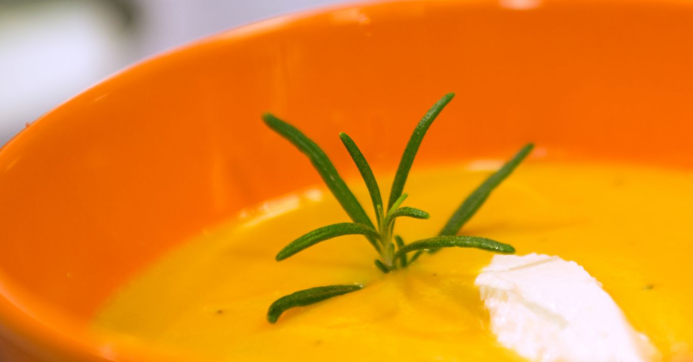 Изпечената тиква и розмаринът се слагат в блендер и се смилат.