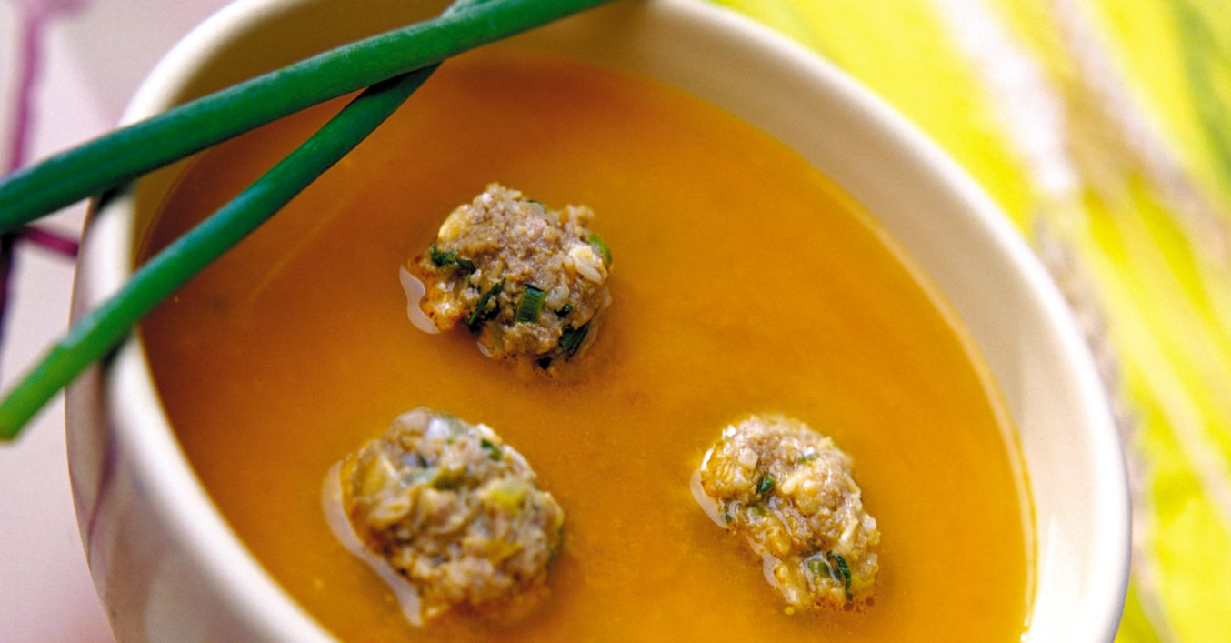 От готовата кайма се оформят топчета, които се пускат в супата. След около 10 минути топчетата са готови и се изваждат.