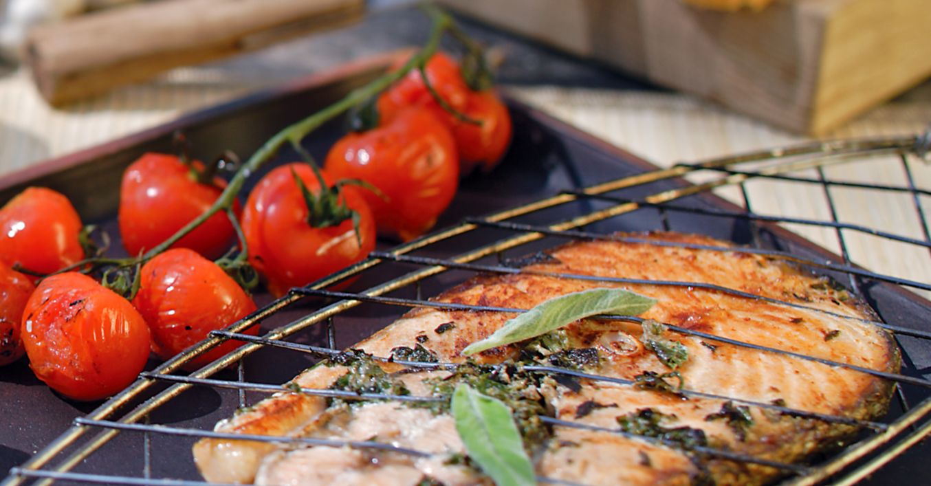 Котлетите се намазват със сместа и се пекат от всяка страна по 3-4 минути на умерена жар. По време на печенето се мажат допълнително с билковата смес. Поднасят се украсени с резенчета лайм.