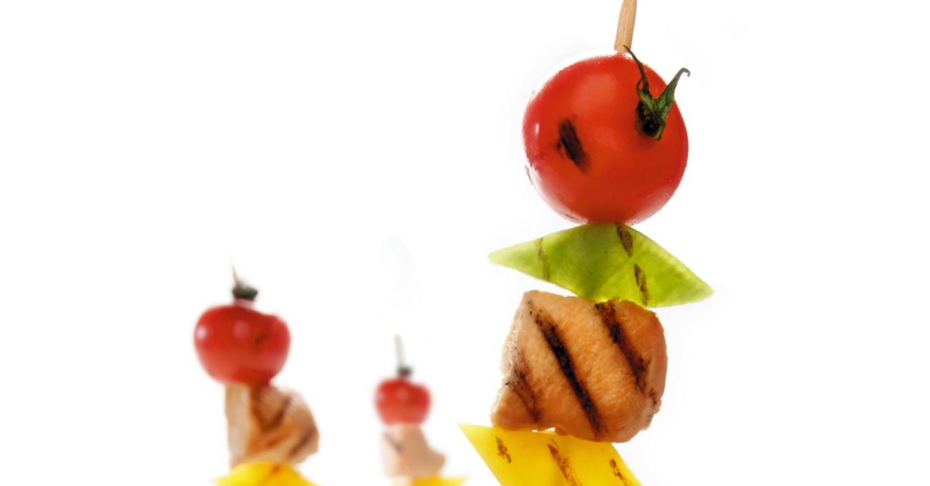 Изпечените шишчета се сервират заедно с купичката със соса.
