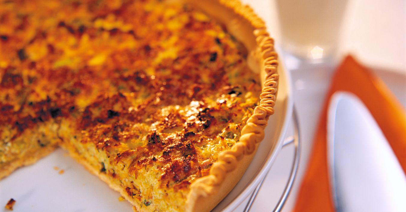 Заливката се приготвя, като яйцата, сметаната и солта се разбиват, докато се смесят добре. След това се изсипват върху плънката.